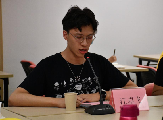 学生代表江卓飞分享了在彭妙颜教授课堂中的学习收获与感悟,并对如彭老师一样长期坚守在教研工作岗位上无私奉献的老教师们表示由衷的敬佩与感谢,将在学院关工委老师的带领下,树立理想信念教育,传承红色基因,把革命前辈流血牺牲建立的社会主义江山,代代相传。