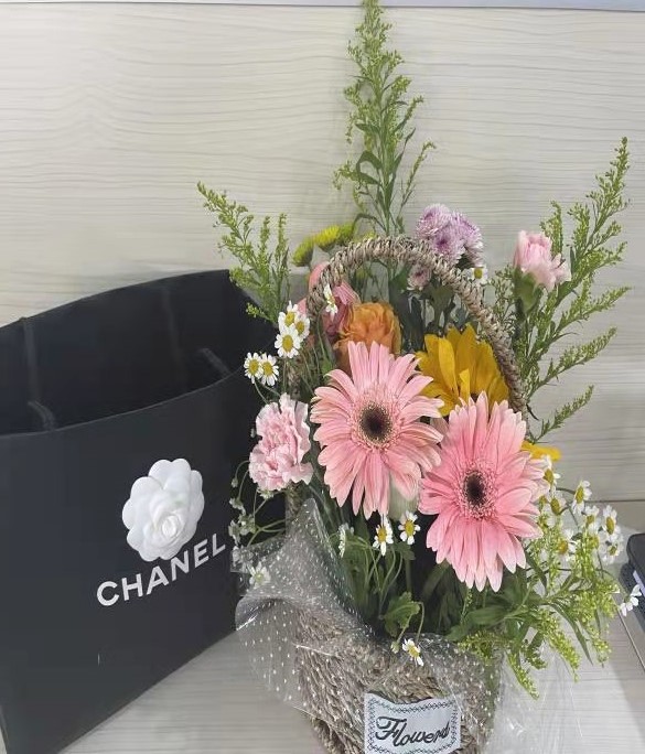 在动手插花环节,大家跟着花艺师的节奏,经过摆花、剪枝、修叶、扎束等步骤后,一枝枝玫瑰、向日葵、小雏菊等普普通通的花草经大家的巧手修剪后错落有致,经过巧妙地创意组合创作出一篮篮错落有致、色彩鲜艳的插花作品。大家感到满满的成就感与幸福感,纷纷拍照合影留恋,现场一片其乐融融的景象。
