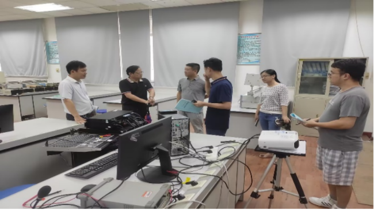 检查过程中,陈泽龙书记和尚文利副院长和正在上创新实践课程的同学进行深入沟通,了解相关课程的课程设置、教学安排等方面的内容,并要求全体实验员做好学生的服务工作。陈泽龙书记也对虚拟仿真实验室建设、黄埔实验室的安排布置、实验室搬迁等具体工作提出了指导意见,要求实验室安排上要契合学院处于高速发展的状态,要站到全局的角度去想问题、办事情,打好提前量,更好的支撑学院高质量的全面提高。