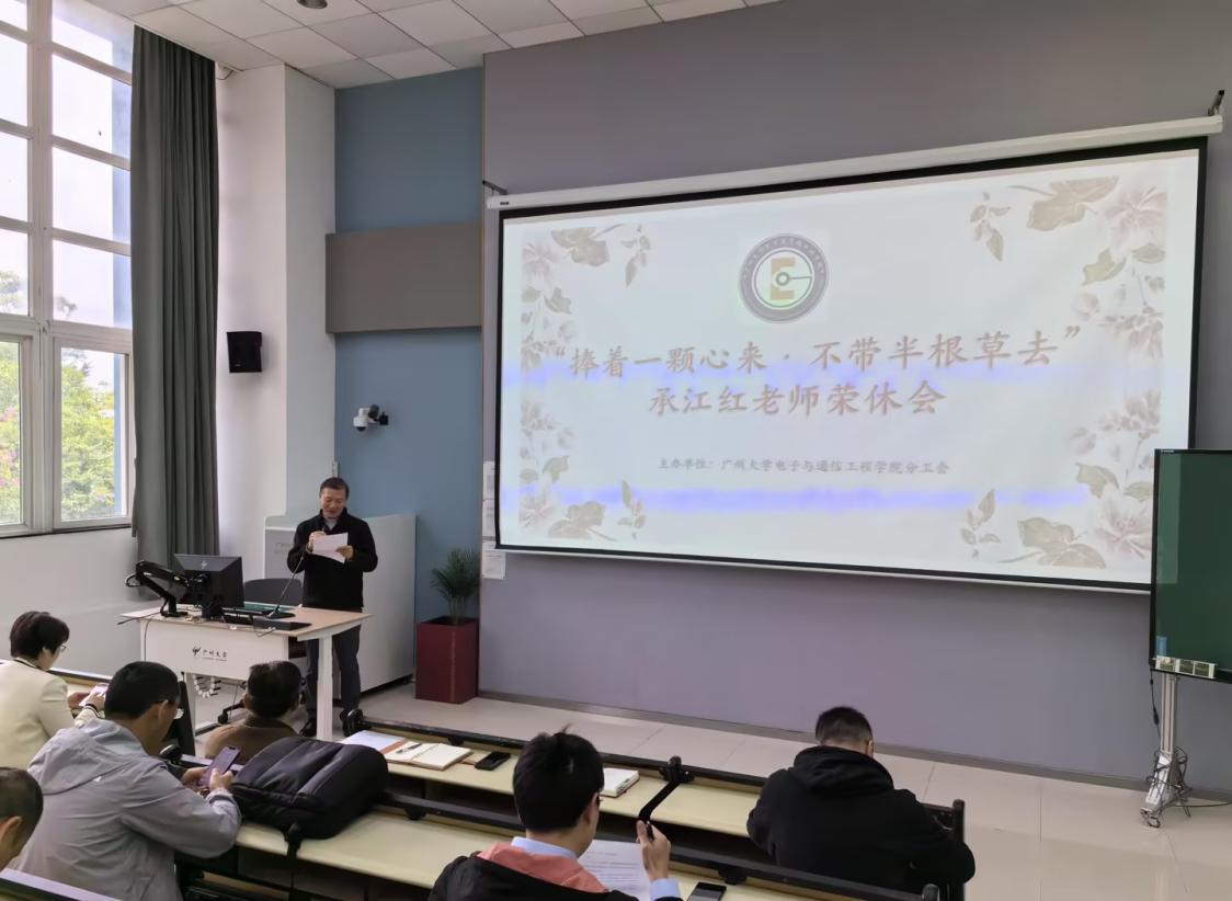为退休教师承江红举办了一场温馨难忘的荣休欢送会。会议由学院工会主席谢玲主持,学院全体教职工参加。