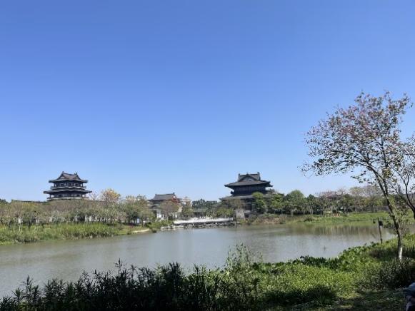 广州海珠湖公园湖心区面积1422.6亩,其中水面面积79亩,由内湖和外湖组成的。外湖实际上是由六条河涌相连组成的“玉环”,环抱着圆形的内湖,十分优美。因此,海珠湖也被形象地比喻为“金镶玉”。海珠湖公园恰好与广州塔、体育中心呈一直线,湖区、果园组成了广州市中轴线南段的“生态绿轴”,成为名副其实的广州“绿心”。女老师们参观了海珠区最大的湖泊,沿湖泊园踏青赏花,观看湖中飞翔的各种鸟类,一起渡过了一个舒适随性的下午。