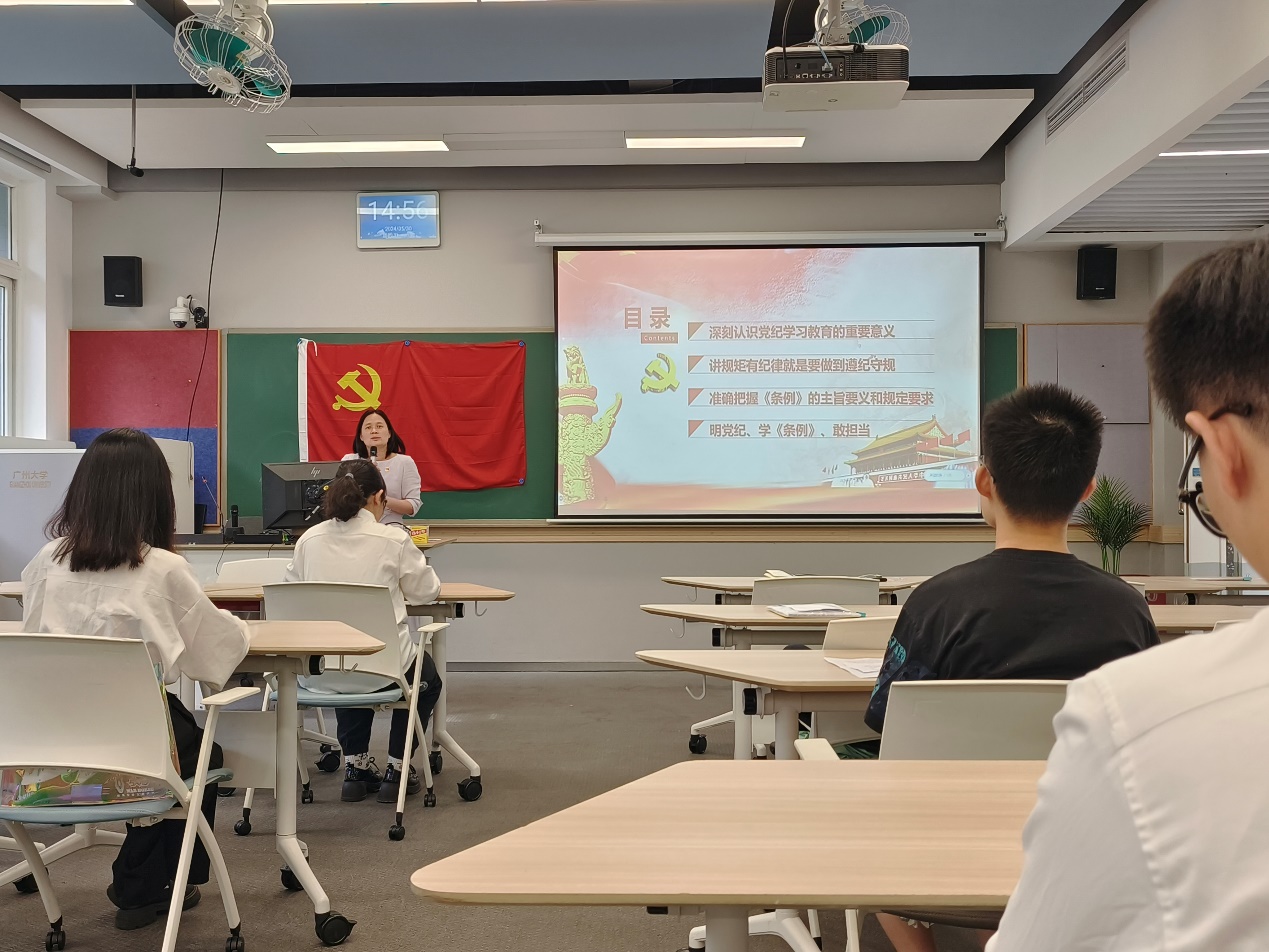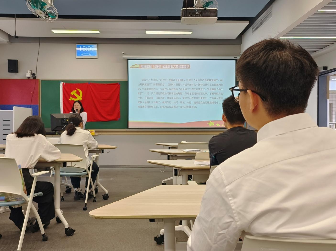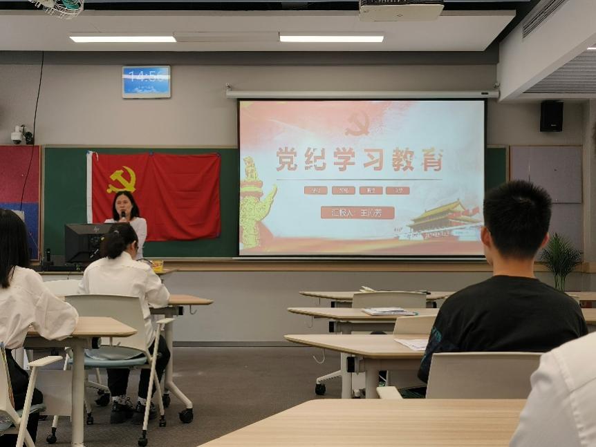 学生第三党支部在理南206室开展党纪学习教育,学生第三党支部书记王沁芳讲关于党纪学习教育的专题党课。