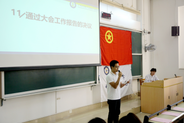 第二项议程:刘建涛同学向大会作《共青团成人短视频